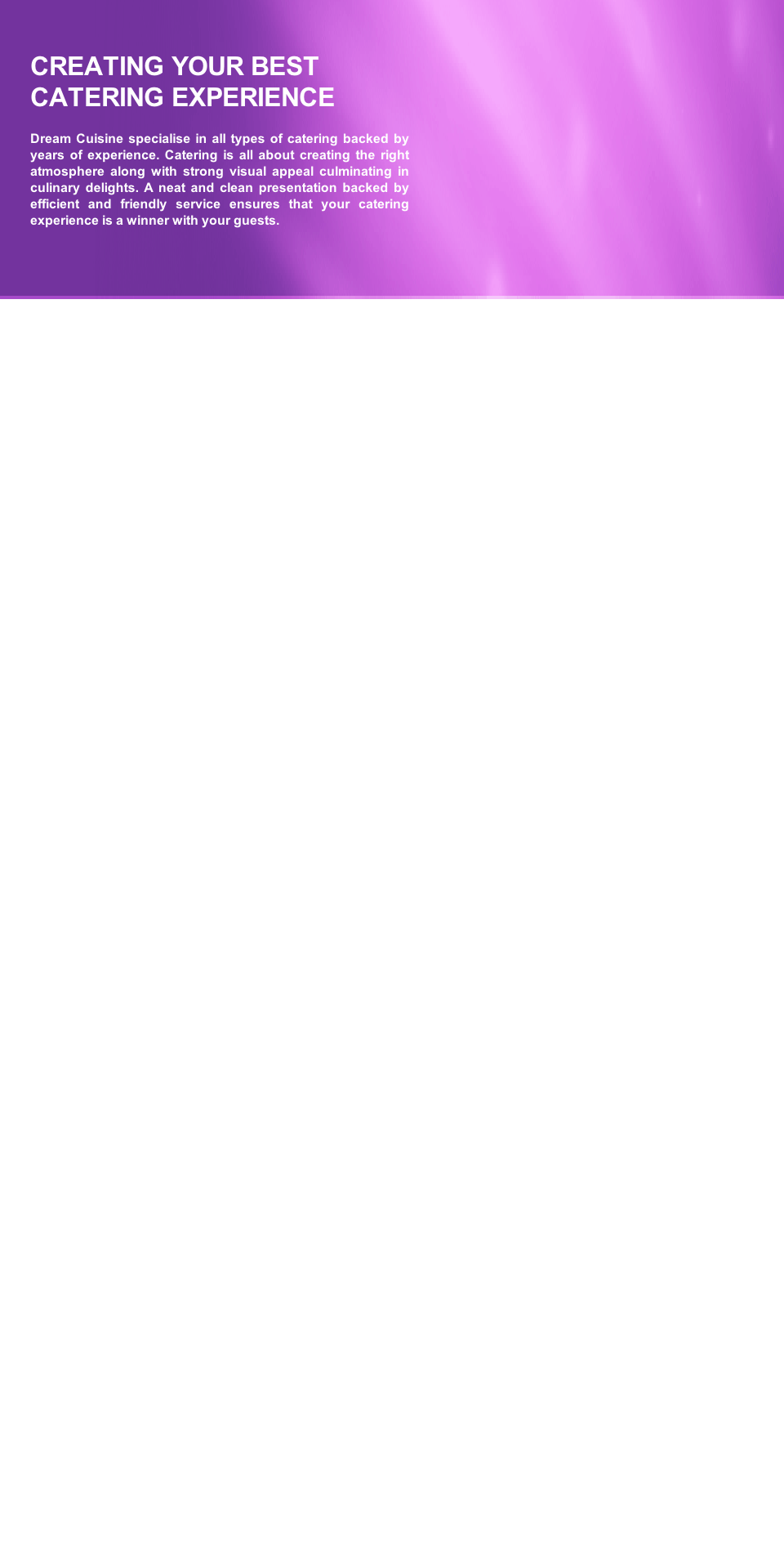Her service levels and experience will surpass any expectations and her professionalism will ensure that all your catering services will become a proudly Dream Cuisine Product.
